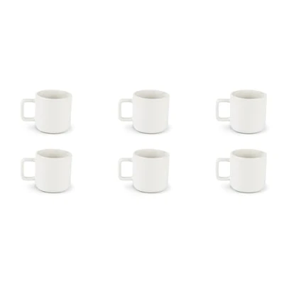 Excelsa Nordic Set of 6 White Coffee Cups, Stoneware Ceramic, 80 ml Capacity