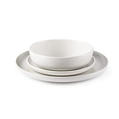 12-piece dinner set: The Excelsa Nordic dinner set consists of 12 pieces and is suitable for a table with a modern and minimal taste, which never goes out of style. The shapes of the service are characterized by clean lines and Total White so as to make it perfect for setting a refined table both at parties and dinners with friends as well as on informal occasions such as everyday lunches and dinners DESIGN: The service is characterized by its matte finish and a modern, linear style, which gives it a refined and timeless design, ideal for enhancing the elegance of your table. You can use these dishes to serve a complete meal, from appetizer to dessert, and enhance every course to the fullest DAILY USE: The Nordic dish set is also ideal for everyday use as it is dishwasher safe. It can also be used in the microwave for quick and easy heating Composition: the dinner set is entirely made of ceramic and includes 4 dinner plates Ø 27 cm and height 3 cm; 4 soup plates Ø 18 cm and height 5 cm; 4 fruit plates Ø 20 cm and height 2 cm