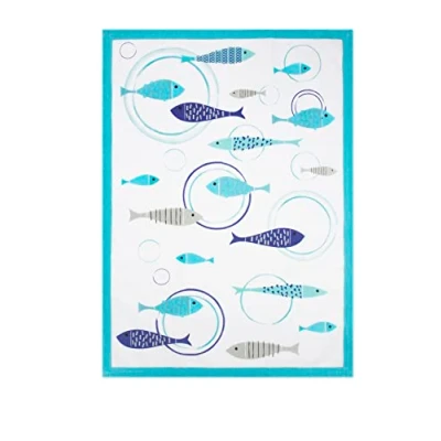The tea towel is made of 100% Cotton 200 grams per square meter Size: cm. 50 x 70 cm North Sea decoration with blue edging Machine washable at 40°C. Do not bleach, iron at medium temperature, do not tumble dry. Do not dry clean. Wash separately.