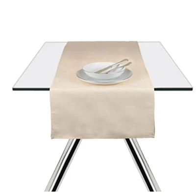 100% Cotton Panama Yarn Dyed Table Runner Dimensions: 140 x 45 cm. Runner thickness: 0.3 cm. Colour: cream Machine washable. Do not dry clean, do not tumble dry, do not bleach, do not pre-wash, use gentle cycle, wash at 30°C, do not spin Iron up to 110 °C, dry flat