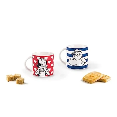 Excelsa Popeye & Olivia Set of 2 Porcelain Mug, Blue and Red