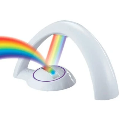 Amazing rainbow projector.Projects rainbow across the walls and ceiling Turns on with the push of a button.The light turns off automatically after 10 minutes.Warning: It will always turn off automatically after 10 minutes even if you choose the USB power cable! Uses The latest Third-generation Multi-colord LED bulbs,which makes the rainbow much brighter,more realistic and more colorful than the previous editions Powered by 4 x AAA batteries (not included) or a USB power cable (included), our rainbow projector night light turns off automatically after 10 minutes to prolong the battery life Improve children and babies sleep,make your room more cozy and romantic,see a magical rainbow come to life