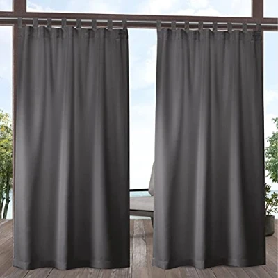 HEAVY DUTY, INDOOR/OUTDOOR: Made from water and mildew resistant polyester fabric that can be used indoors or outdoors. Use these thick, canvas-like textured curtains to set the mood in your outdoor space, create privacy, and block sunlight while you relax. LIGHT FILTERING OPACITY: With light filtering opacity, these indoor/outdoor curtain panels provide privacy for your space while still allowing some natural light to shine through. They also help to block the sun's rays while you relax in your outdoor space. HOOK-AND-LOOP TAB TOP: These two curtain panels feature a hook-and-loop fastened tab top per curtain panel with an inside diameter for curtain rod measures 1.5"- each panel sewn with 3" heading; 3" bottom hem. SET OF TWO CURTAIN PANELS: Includes two (2) curtain panels, each measuring 54"W x 96"L. HEAVY-DUTY, CANVAS-LIKE PANELS: These polyester panels offer a heavy-duty, canvas-like feel fabric. The simple yet stately, polished look makes them a gorgeous addition to any outdoor extension of your home.
