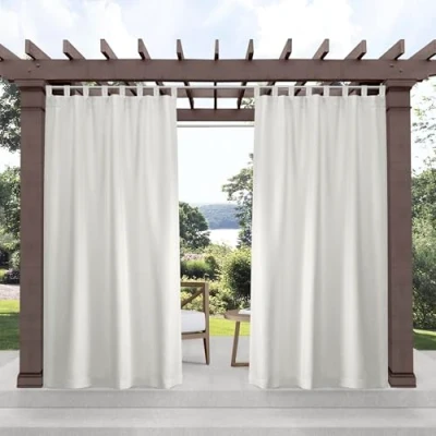 HEAVY DUTY, INDOOR/OUTDOOR: Made from water resistant polyester fabric that can be used indoors or outdoors. Use these thick, canvas-like textured curtains to set the mood in your outdoor space, create privacy, and block sunlight while you relax. CARE INSTRUCTIONS: Spot clean and/or hand wash. Use iron on low heat to straighten and remove creases/wrinkles from packaging. HOOK-AND-LOOP TAB TOP: These two curtain panels feature a hook-and-loop fastened tab top per curtain panel with an inside diameter for curtain rod measures 1.5"- each panel sewn with 3" heading; 3" bottom hem. SET OF TWO CURTAIN PANELS: Includes two (2) curtain panels, each measuring 54"W x 96"L. HEAVY-DUTY, CANVAS-LIKE PANELS: These polyester panels offer a heavy-duty, canvas-like feel fabric. The simple yet stately, polished look makes them a gorgeous addition to any outdoor extension of your home.