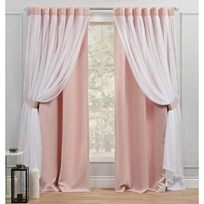 Exclusive Home Curtains Catarina Layered Solid Blackout and Sheer Hidden Tab Top Curtain Panels, 52x84, Rose Blush