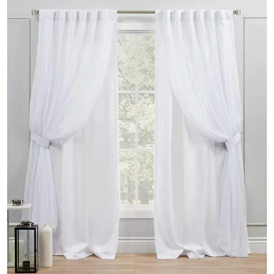 Exclusive Home Curtains Catarina Layered Solid Room Darkening Blackout and Sheer Hidden Tab/Rod Pocket Top Curtain Panel Pair, 52x108, Winter 2 Count