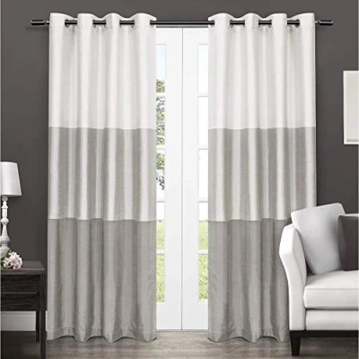 Chateau drapes offer a wide horizontal stripe pattern, constructed by luxurious silk fabric Set includes: Two (2) curtain panels 8 matte silver grommets per panel; inside diameter for curtain rod measures 1-5/8" - panel sewn with 4" heading; 3" bottom hem