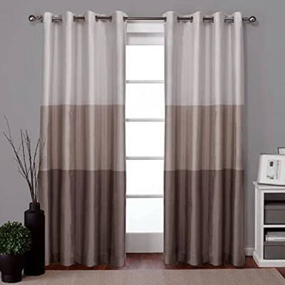 Chateau drapes offer a wide horizontal stripe pattern, constructed by luxurious silk fabric Set includes: Two (2) curtain panels 8 matte silver grommets per panel; inside diameter for curtain rod measures 1-5/8" - panel sewn with 4" heading; 3" bottom hem