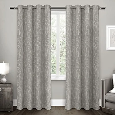 AmazonForest Hill drapes offer a contemporary branch motif on a linen look woven blackout fabric Set includes: Two (2) curtain panels 8 matte silver grommets per panel; inside diameter for curtain rod measures 1-5/8" - panel sewn with 4" heading; 3" bottom hem