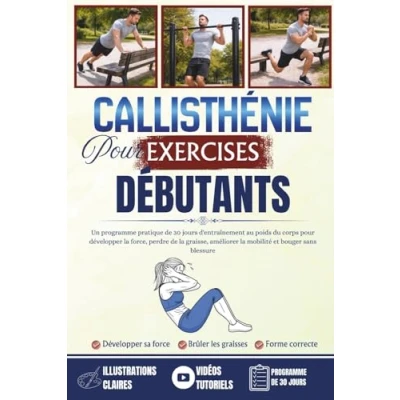 Exercices de callisthénie pour débutants: Un programme pratique 30 jours d'entraînement au poids du corps développer la force,perdre graisse,améliorer mobilité et bouger sans blessure