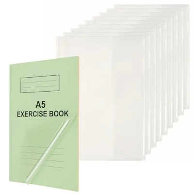 EXERZ A5 Exercise Book Cover 10pcs Clear Water Resistant Slip On Protective Jackets for Notebook, Sleeve, PP (A5 x 10)