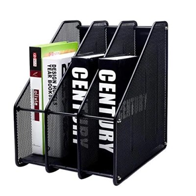 Use for paper sizes up to A4,for magazine,document,cookbooks,notebook ect Mesh metal vertical storage design maximizes space to keep files and letters safe and your desk tidy Hollow out body,ventilated and keep your stuff dry,hollow out bottom, keep it from gathering the dust and it's easy to clean Detachable design, easy to assemble and steady structure,when you don't use it, just disassemble it and convenient to storage Perfect as an office, housing, office, desk organizer accessories. Large storage space for magazines, cookbooks and magazines