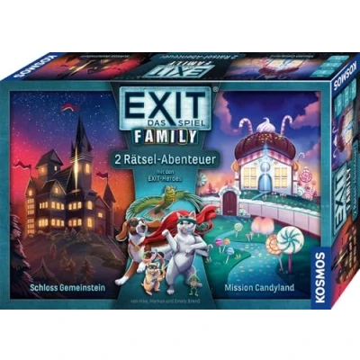 Two exciting puzzle adventures in one box: Castle Gemeinstein & Mission Candyland. Two exciting puzzle adventures in one box: Castle Gemeinstein & Mission Candyland. Get to the bottom of the strange events in Gemeinstein Castle and the candy factory with the EXIT Heroes. 2-4 players solve clever puzzles through team spirit, creativity and combination skills as a team in the adventure game. Ideal introduction to the world of EXIT The game for families with children aged 8 and up: clever puzzle mechanisms implemented in a family-friendly way The escape room game for the home. With tutorial in the free KOSMOS explainer app. Playable with or without app. Ideal as a party game, event game and as a birthday gift. Unique gaming experience as the materials for the extraordinary puzzles are changed., Manufacturer: KOSMOS