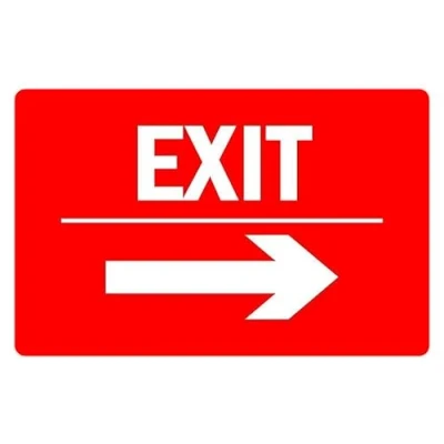 Exit right arrow sign. 1mm flexible Plastic sign. Digitally printed for extra durability. Drill and screw in position or use double sided tape to mount onto suitable surface. All signs come with a 5-year warranty. All our signs are UV resistant meaning they will not fade in sunlight. Suitable for indoor & outdoor use.