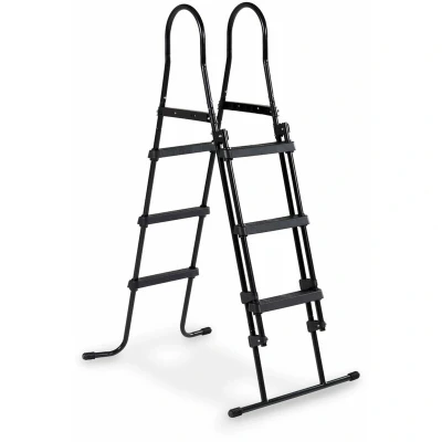 General description The EXIT ladder for swimming pools is designed for frame heights between 35.83 and 42.13 inches, providing a safe and convenient way to climb in and out of the pool. It features a black finish, ensuring durability and style. Technical specifications Frame height compatibility: 35.83 - 42.13 inches Color: Black Usage The ladder is equipped with a railing for children to hold onto, and the steps have an anti-slip layer to prevent slipping when wet. Additionally, it can be easily folded up from the outside of the pool, preventing unsupervised access for children.