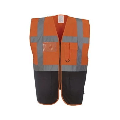 Expert Workwear Coloured Hi Vis Executive Vest High Viz Vests Zip with Pockets 18 Colours (Small, Orange/Navy)