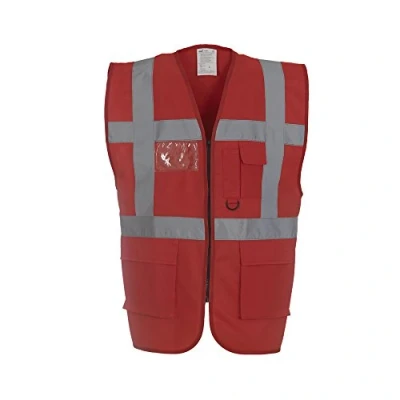 Expert Workwear Coloured Hi Vis Executive Vest High Viz Vests Zip with Pockets 18 Colours (XL, Red)