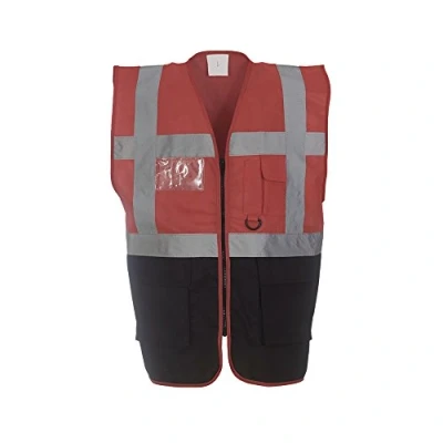 Expert Workwear Coloured Hi Vis Executive Vest High Viz Vests Zip with Pockets 18 Colours (XL, Red/Black)