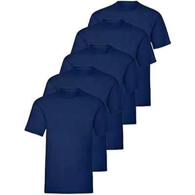 Expert Workwear Mens 5 Pack Plain Crew Neck T Shirt Short Sleeve 100% Cotton Tee Navy