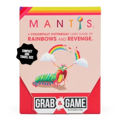How to Play: Dive into Mantis Grab & Game with easy-to-learn rules! Decide between Steal or Score as you race to match cards or snatch them from opponents, making every round a thrilling gamble of strategy and luck. What's Included: Inside the box, you'll find 60 vibrant, action-packed cards. Play to collect matching cards or swipe them from others—each round brings a new twist and turns to your card game adventure! Who's it For?: Perfect for players ages 8 and up who love a mix of strategy and surprise! Whether you’re a family looking for fun or friends wanting a competitive edge, this game is sure to keep everyone engaged. Where to Play: Ideal for game nights, road trips, and camping adventures. Mantis Grab & Game is compact and portable, making it easy to pack along for spontaneous fun wherever you go. Our Story: From the creators of Exploding Kittens, known for quirky and addictive games, comes Mantis Grab & Game. With our roots in Kickstarter success and a passion for innovation, we're here to make your game nights unforgettable!, Manufacturer: Exploding Kittens