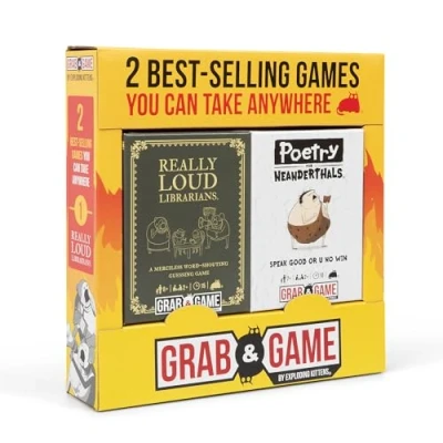 How To Play: Poetry For Neanderthals flips the script with a word guessing game where you can only speak in single-syllable “caveman talk”. Together in this game bundle, you have two different styles that are guaranteed to shake up any game night! In Really Loud Librarians, players shout words that fit the category and start with any of the three letters on the card. Most words shouted wins, turning every round into a fast, hilarious showdown. What's Included: Really Loud Librarians - 35 Letter Cards, 20 Category Cards, and a hilariously brief instruction manual. The box may be small but the energy is BIG. Poetry For Neanderthals – 60 double-sided Poetry Cards packed with ridiculous words to grunt out in this laugh-out-loud word guessing game. This 2-pack is a great game bundle and doubles as one of the most entertaining portable games for adults or families. Double the Fun: Poetry For Neanderthals works with 2+ players for everything from a quick laugh to a party game, while Really Loud Librarians thrives with 4–8 players racing to shout answers. Together, this bundle scales from low-key nights to big, noisy family fun that makes every game night unforgettable. Compact and Portable: This 2-pack is easy to toss in a bag, making it perfect for travel games or family games on the go. Great for kids and adults alike, it’s ready for game night, weekend trips, or filling time between plans. From the folks that brought you Exploding Kittens: Exploding Kittens believes in making games that make your friends and family more entertaining! From kids card games, teen games, to adult games, it's a mission we've committed to for 10 years and counting!, Manufacturer: Exploding Kittens