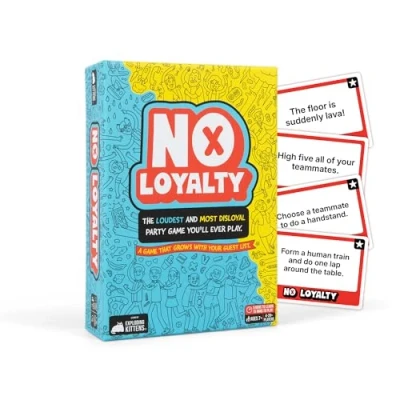 How To Play: Flip a Challenge Card, then flip your Team Card to see which side you're on. Race to find your new teammates and complete the task before the other team. Teams change every round, and the first player to 5 tokens wins! What's Included: 20 Team Cards, 100 Challenge Cards, 72 Tokens, instruction booklet Play with 4-20 Players: Big group energy or small matchups; No Loyalty brings nonstop chaos to any big group party game night. Where To Play: Anywhere you've got space to move— kitchen table, backyard space, common area, and of course the living room for family game night! From The Creators Of Exploding Kittens: We make card games that make your friends and family more entertaining, and No Loyalty turns teamwork on its head! We design our games to be excellent family gifts, game night games, or casual icebreakers for anyone who loves to laugh, compete, and add a little chaos to their free time!, Manufacturer: Exploding Kittens