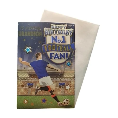 "Express Yourself" Birthday Card for No.1 Blue and White Theme Grandson Includes Envelope Football Fan (FG7518A/02)