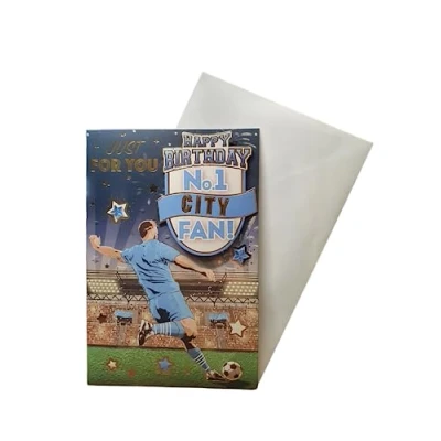 Celebrate your No.1 City Fan birthday with our "Express Yourself" Birthday Card. This football-themed card is perfect for the avid football fan, featuring vibrant colors and a lively design. The card comes with an envelope, making it a complete package for your beloved special day. Blank inside to allow for a personalized message to your loved one Dimensions: 19 x 13.3 cm (perfect size for easy handling and display). Vibrant colors and lively football-themed design birthday card to delight any football enthusiast. Includes an envelope for convenient gifting and mailing