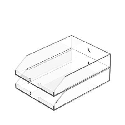 2-Tier Design; Simple and stylish, keeping papers and files neatly sorted Space-saving Design; Stackable design allows you to stack them together or put them to different place separately. Slot type design - easily stack multiple tray not easy to slide off, nicely increased and utilized of the desktop's vertical storage space Multipurpose; Stores and organizes paper, magazines, files, documents,Can be used for file tray stand, desk folder organizer tray, letter sorter desktop, book collection organizer, folder holder, and more Sturdier and Durable; Made of 5mm thick acrylic material, durable quality not easily broken. polished edge construction and non-slip bottom design, And has a polished edge structure and non-slip bottom design. We also offer a full line of acrylic organization solutions to outfit your workspace Package Include; Acrylic Tray x 2; Size: 9.38 x 2.75 x13 inches