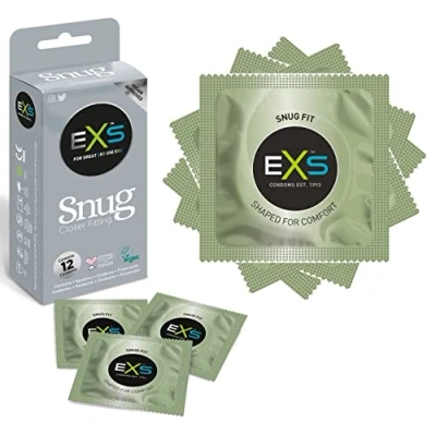 EXS Snug Fit Condoms Pack of 12 Smaller Size Tighter Trim Close Vegan