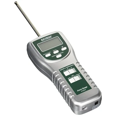 Test-meter.co.ukExtech 475044 Force Gauge measures push/pull force. 20kg, 44lbs, 196N. ±0.5% accuracy. Reversible LCD, zero adjust, peak hold. Includes hook adaptor, extension rod, batteries, case.