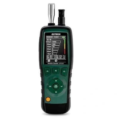 #html-body [data-pb-style=P0BVUIM]{justify-content:flex-start;display:flex;flex-direction:column;background-position:left top;background-size:cover;background-repeat:no-repeat;background-attachment:scroll}Extech VPC260 6-Channel Particle Counter The Extech VPC260 6-Channel Particle Counter is specially designed for monitoring air quality and environmental health. It checks for harmful air pollutants such as exhaust fumes, smoke, respirable crystalline silica dust (RCS), and airborne combustible dust. The VPC260 also measures up to six channels of particle sizes including air temperature, relative humidity dew point and wet bulb. The VCP260 is capable of measuring particle sizes down to 0.3µm and supports a maximum flow rate of 0.035 ft3/min (1L/min). Boasting a bright 2.8-inch TFT colour display, the VPC260 ensures clear data visibility under varying lighting conditions. It also allows users to configure sample times, count thresholds, and programmable delays to suit their testing requirements. The VPC260 storesup to 1,000 data sets and includes practical features such as date and time setup controls and an Auto Power Off function – which can be disabled for continuous recording. Data management Measurements can be exported in CSV format via the USB Type-C interface directly to a PC, making it efficient and straightforward to handle data. Users can also download the free VPC260 software (compatible with the Extech VPC260 6-Channel Particle Counter), to access additional functionality for organising, viewing, and reporting results. Applications The VPC260 ability to measure multiple particle sizes and environmental conditions makes it suitable for use across various industries and environments, including: Indoor air quality assessment Verifying HVAC system cleaning and filtering Checking air cleaner removal efficiency Monitoring particle migration from construction or restoration Particle source identification Yield improvement in precision manufacturing Personal exposure monitoring Verifying wildfire particulate levels Checking the functionality of environmental controls, e.g., paint booth exhaust The compact and practical design of the VPC260 makes it easy to use in the field and in controlled environments. The included 1/4"-20 tripod mount allows for stable, hands-free monitoring during extended sessions. It comes as a complete package that include a zero count filter, tripod, USB-C cable, and a universal AC adapter with interchangeable US, EU, UK, and AU plugs. part number: VPC260 Key Features Simultaneously measure and display 6 channels of particle sizes (down to 0.3 μm), air temperature, humidity, dew point and wet bulb Store 1000 data sets Export data in CSV format to a PC via USB cable for easy reporting and documentation (free VPC260 software download is required to view data from your PC) 8-inch (71 mm) TFT colour display 035 ft³/min (1 L/min) flow rate Selectable sample time, count data, and programmable delay Date/time setup controls Auto Power Off with disable feature for continuous recording 1/4"-20 tripod mount USB Type-C interface for data transfer to your computer