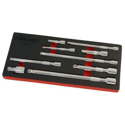 General description WOBBLE EXTENSION BAR SOCKET SET includes 9 pieces designed for professional and DIY use. The set features wobble heads for enhanced accessibility and a fully polished chrome finish for durability. Technical specifications Drive Sizes: 1/4" (2", 4", 6"), 3/8" (3", 6", 9"), 1/2" (2", 5", 10") Material: Drop forged steel Other information 1 Year Warranty Included