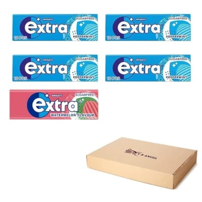 Refreshing Peppermint Flavor: Enjoy the cooling sensation of peppermint with each chew of our Extra Peppermint Sugarfree Chewing Gum. Sugar-Free Formula: Our chewing gum is sugar-free, offering a guilt-free option for freshening your breath and enjoying the refreshing flavor of peppermint without added sugar. Surprise Extra Watermelon Gum: As an added treat, each pack contains an extra watermelon-flavored chewing gum, providing a delightful twist to your chewing experience. Convenient Pack of 5: Each order includes a pack of 5 Extra Peppermint Sugarfree Chewing Gums, ensuring you have plenty of flavorful gum to keep your breath fresh throughout the day. Long-Lasting Freshness: Our chewing gum delivers a long-lasting burst of peppermint flavor, helping to keep your breath fresh and invigorated for an extended period.