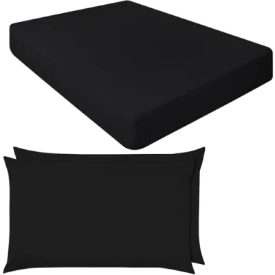 Extra Deep Fitted Sheets 16"/40CM Luxury Percale in 15 Colours (Black, Single + Pillowcase Pair)