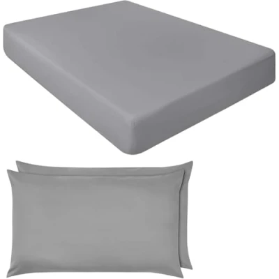 Extra Deep Fitted Sheets 16"/40CM Luxury Percale in 15 Colours (Silver, Single + Pillowcase Pair)