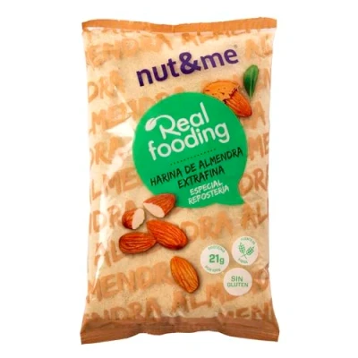 100% GROUND ALMONDS: Nothing but finely ground almonds. No additives, preservatives, GMOs, or any artificial ingredients, just pure, wholesome goodness to keep it as healthy as possible. HEALTHY: At nut&me, we’re committed to offering healthy products. In this case, almond flour provides benefits that are especially helpful. Almonds also have an anti-fatigue effect thanks to their high calcium content. Like any legume or nut, they are also rich in iron. VEGAN & GLUTEN-FREE: This product is suitable for both gluten free diets and vegans, as it’s made exclusively from finely ground almonds. BENEFITS: It’s a fiber- and protein-rich food that helps build muscle mass, maintain good muscle tone, and prevent injuries. Plus, nut&me almond flour stands out for its extra-fine texture, making it an excellent choice for baking. STORAGE & USAGE: Keep in a cool, dry place. Once opened, store in an airtight container. You can use it to prepare a wide variety of healthy recipes, including savory ones like bread, cakes, pies, falafel, or pizzas.