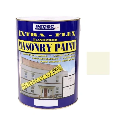 General description Bedec Extra-Flex Masonry Paint in Sea Foam is an elastomeric masonry paint designed for the protection of various exterior surfaces including masonry, roughcast, pebble-dash, brickwork, cement, and concrete rendered surfaces. This water-based and quick-drying paint offers a smooth finish and is capable of stretching up to 400%, making it ideal for areas prone to movement and cracking. Technical specifications Type: Modified acrylic blend Coverage: Approximately 9-11 sq meters/litre per coat when applied by brush or roller Features: Microporous, flexible, fine cracking bridging Compatibility and accessories Can be applied to previously painted surfaces after suitable preparation Usage Apply with brush, roller, or spray