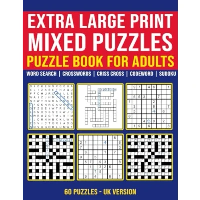 Extra Large Print Mixed Puzzles Puzzle Book for Adults and Seniors (UK Version): 60 Puzzles: Word Search, Crosswords, Criss Cross, Codeword Sudoku