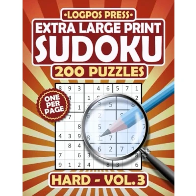 Extra Large Print Sudoku: 200 Hard Puzzles with Solutions, One per Page Volume 3 (Extra Sudoku The Tough Challenge)
