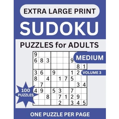 Extra Large Print Sudoku Puzzles: 100 Puzzles 6 Levels of Medium Difficulty One Puzzle Per Page for Adults, Seniors and Elderly with Solutions Instructions