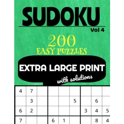 Extra Large Print Sudoku Puzzles Easy: Very with Easy to Read Solutions Volume 4 200 Puzzles: One Puzzle per Page ... Books Difficulty)