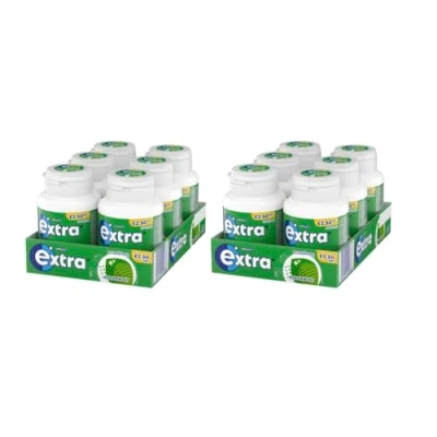 BULK QUANTITY: Two cases containing 6 packs each, with 46 pieces per pack for a total of 552 pieces of spearmint chewing gum PACKAGING: Individually wrapped pieces arranged in convenient multi-pack cases for easy storage and distribution FLAVOUR PROFILE: Long-lasting spearmint taste that provides a refreshing and cooling sensation PORTABLE DESIGN: Each pack is sized to fit perfectly in pockets, handbags, or desk drawers for fresh breath on the go VALUE PACK: Ideal for offices, shops, or households, providing an economical bulk supply of chewing gum