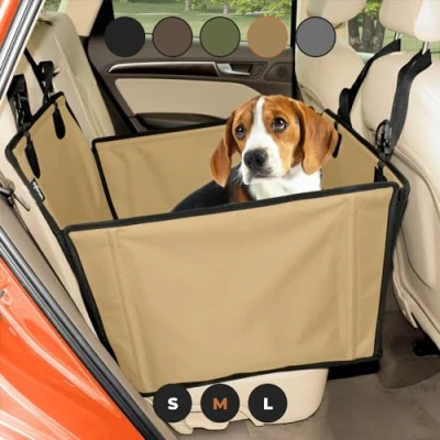 Extra Stable Dog Car Seat Reinforced for Medium Sized Dogs with 4 Fastening Straps Robust and Waterproof Pet the Back of (M Size, Beige)