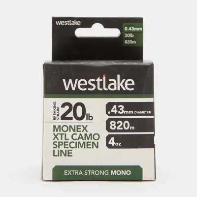 This Monex XTL Camo Specimen Line from Westlake has minimal stretch, is abrasion resistant and casts extremely well. As well it has ability to sink very quickly and is made in a camo colour blend which can merge into a variety of lakebeds. Super tough, extra-strong, reliable mono Ideal for specialist big fish anglers Minimal strength Abrasion resistance Ability to cast and sink well Weight: 4oz Diameter: 0.43mm Breaking strain: 20lb Spool size: 820m Colour: Camouflage