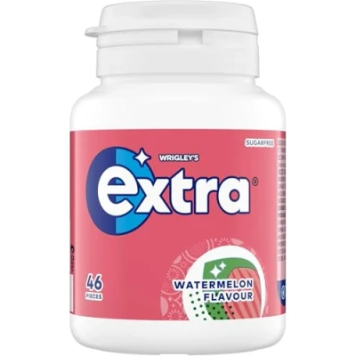 Sugarfree chewing gum pieces bursting with a delicious watermelon flavour Finish your car journey as fresh as you started it; whether you’re driving to a festival, commuting to work, or meeting up with friends, keep Extra chewing gum in the car for fresh breath anywhere It’s been hours since breakfast, you’re due a five-minute breather and you want to make it count; hit refresh and make more of your morning break with Extra chewing gum Extra sugarfree gum is beneficial for dental health as it helps to neutralise plaque acids; it's Oral Health Foundation Approved, Irish Dental Association Approved and suitable for vegetarians