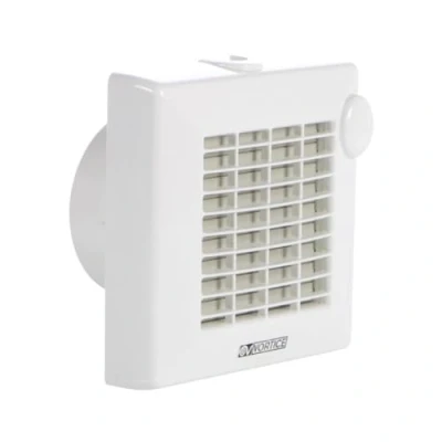 General description The Punto M 150 T LL extractor fan is designed for efficient ventilation in various settings. With a sleek white housing made from UV-resistant ABS, this fan combines functionality with durability. It features a powerful motor that ensures optimal airflow while maintaining a low noise level. Technical specifications Voltage: 220-240 V ~ 50 Hz Nominal size: 150 mm Bearings: ball bearing Speed levels: 1 Wattage: 30 W Current consumption: 0.15 A Revolutions per minute: 2100 Max. airflow rate: 335 m³/h Max. sound pressure level Lp-3m: 46 dB(A) Max. total pressure Pmax.: 59 Pa IP rating: IPX4 Insulation class: II Front cover dimensions: 214 x 215 x 47 mm Total depth: 117 mm Diameter duct connector: 156 mm Weight: 1.1 kg Other information Adjustable shut-off timer (3-20 min): fan turns off after expiration of the pre-set time Thermal overload protection Mounting options: wall, ceiling
