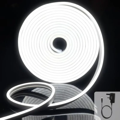 EXTRASTAR Neon Led Strip Light 5M 12V with Power Adapter, IP65 Rope Cuttable 8.5W/M, Cold 6500K