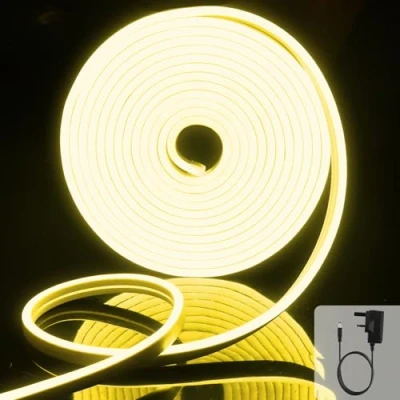 EXTRASTAR Neon Led Strip Light 5M 12V with Power Adapter,IP65 Rope Cuttable 8.5W/M, Lemon Yellow