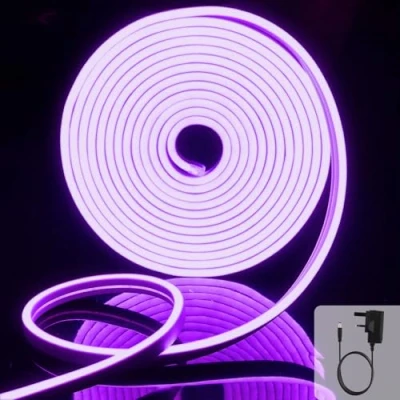 EXTRASTAR Neon Led Strip Light 5M 12V with Power Adapter,IP65 Rope Cuttable 8.5W/M, Purple